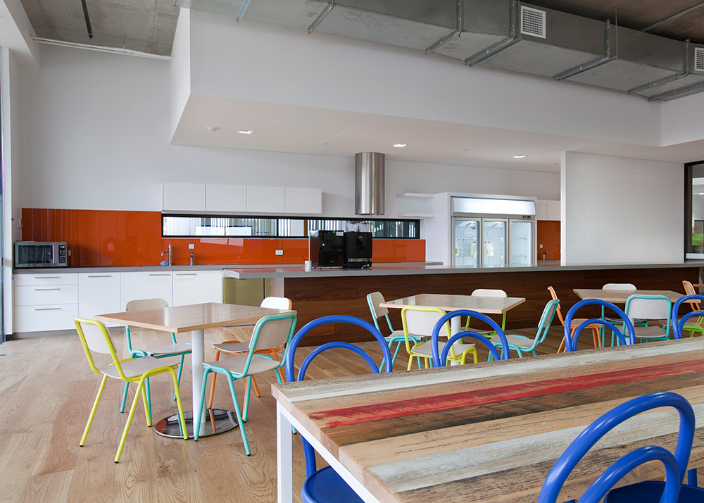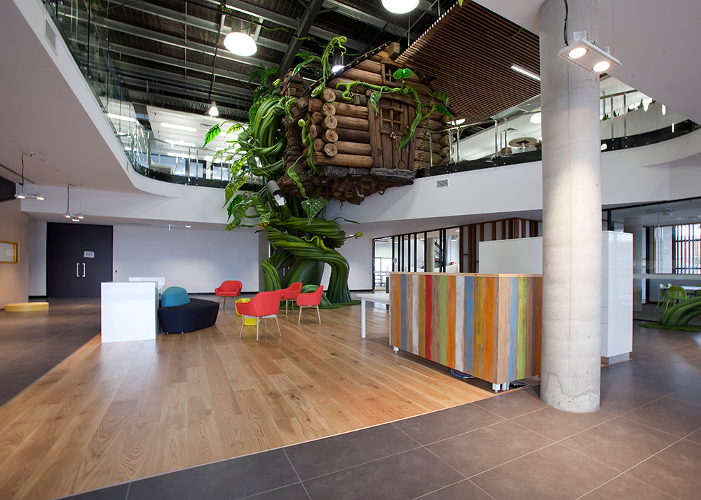 ‘Mooseworld’ as it is known within the company, was designed to fuel creativity, reduce workplace stress and bring out the best in its employees. It features collaborative meeting spaces, toy testing rooms, table tennis and basketball areas, aerobics room, gym and custom staff lunch room and its unquestioned centrepiece – a ‘Jack and the Beanstalk’ elevated cubby house meeting room in its front foyer.