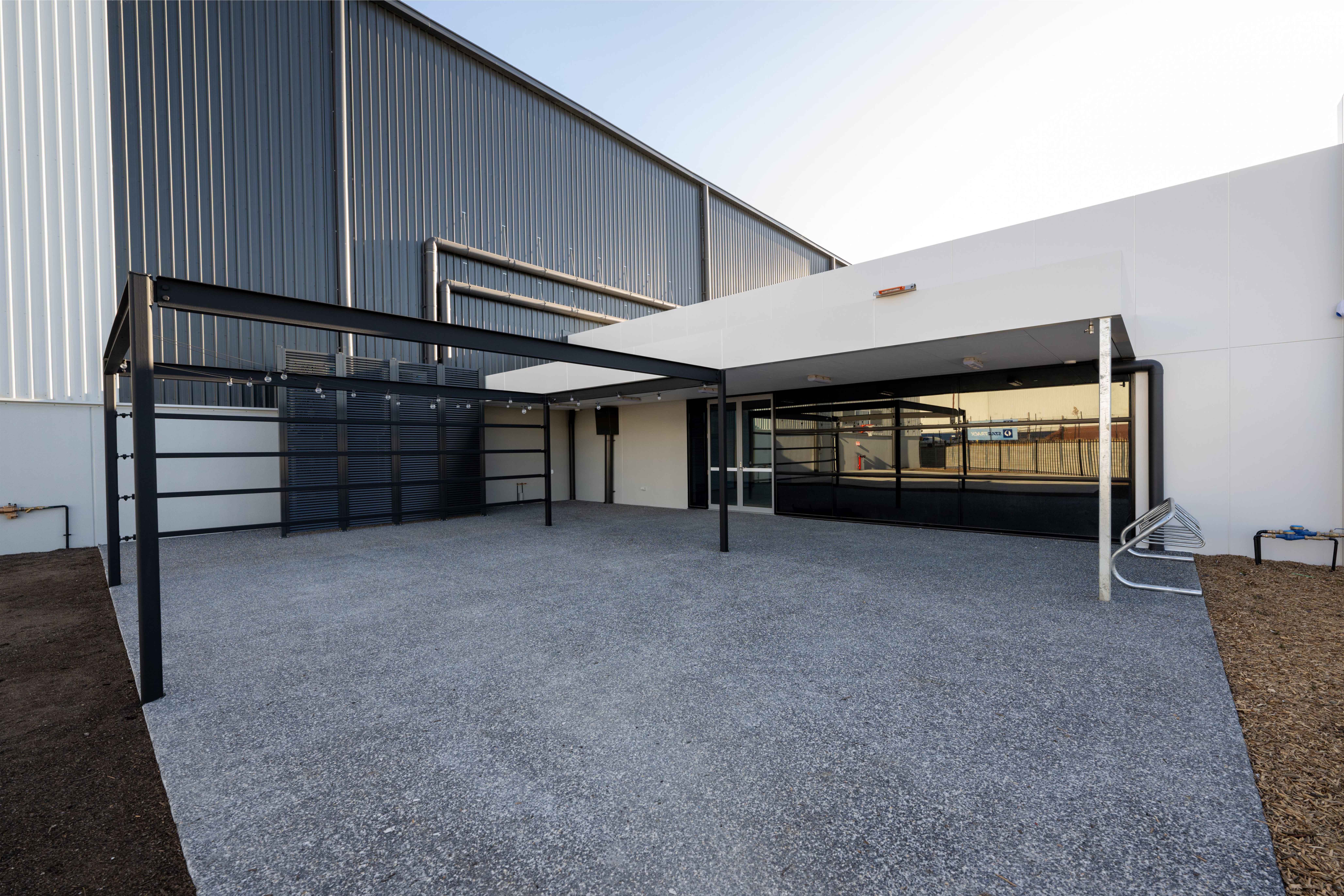 The three units are serviced by separate truck and car entry points controlled by video intercom, car parking for up to 169 vehicles and an eleven-metre cantilever awning at the rear of the development to protect docking areas from the elements.